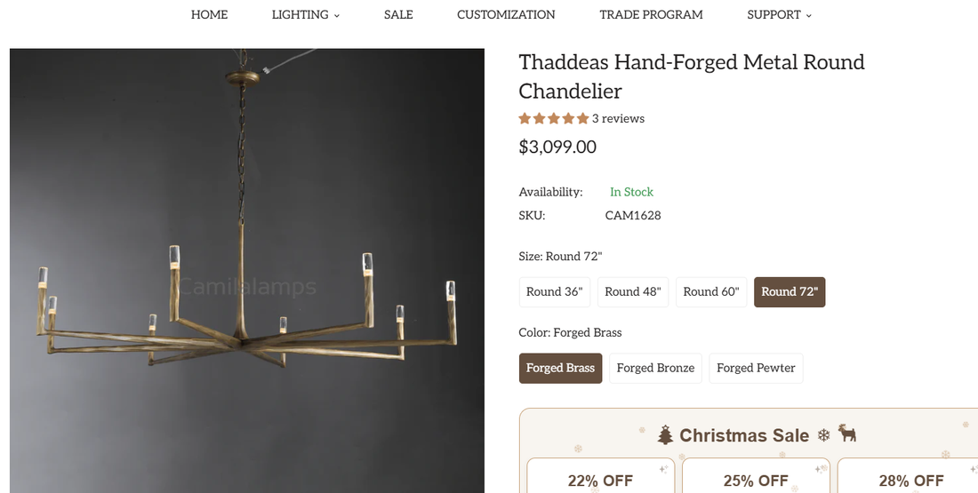 The price difference of 72” Thaddeus