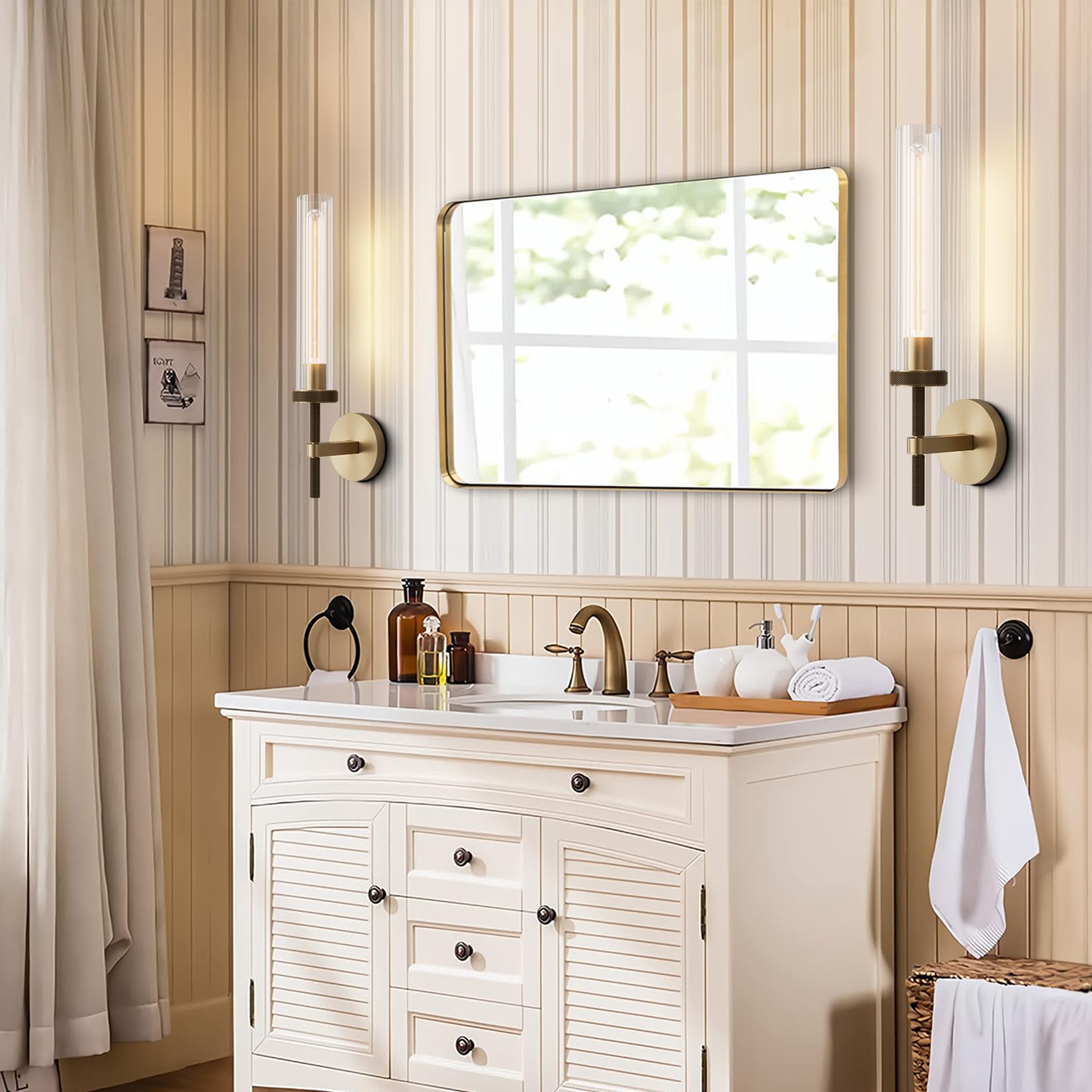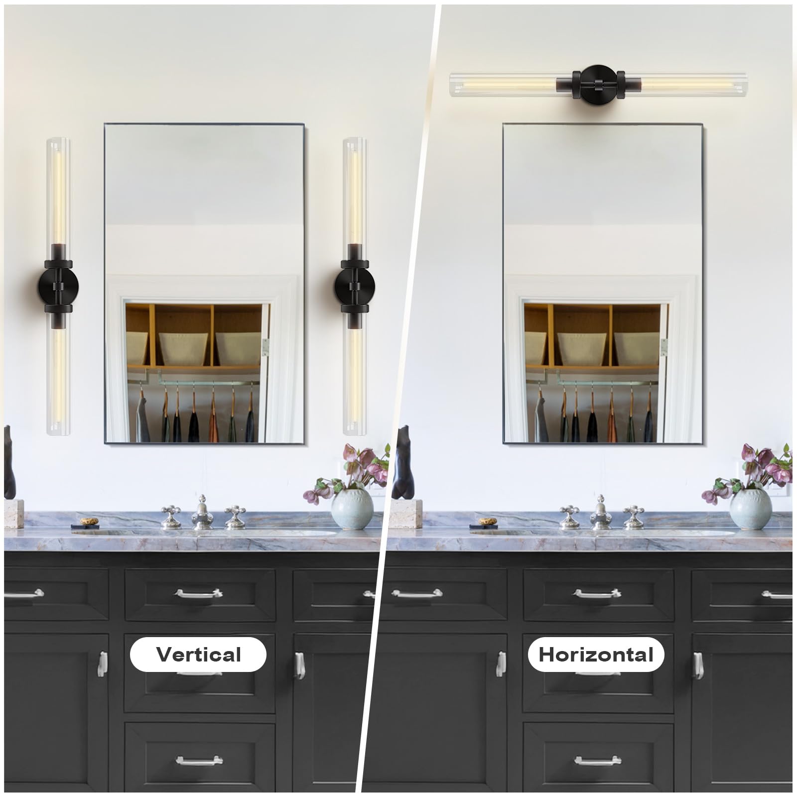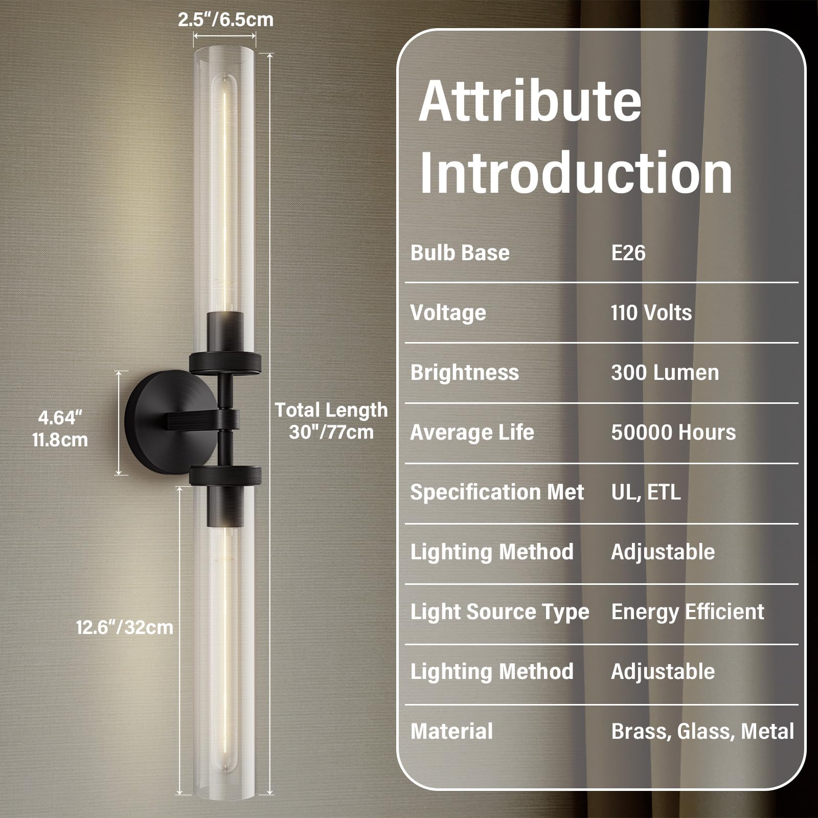 - 【Larger Size】: The Thickened Glass Shade Is Treated With A Special Process To Make It Harder And Clearer. The Size Of The Glass Tube Is 12.8" L*2.5" D, And The Total Length Of The Wall Sconce Is 30". The Wall Sconce Weighs 5.5 Lbs.The design of the bathroom light allows for this bathroom sconce to be installed in an up or down direction. You can choose the direction according to your needs.