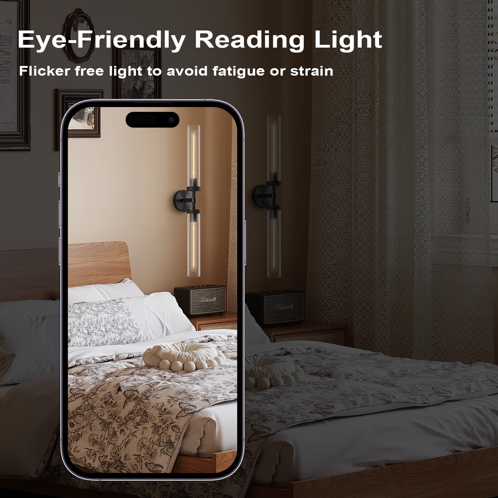 - 【Unique Home Decoration】: This sconces wall lighting features a modern and vintage industrial design style, exuding elegance and beauty. The elongated glass tube shade allows light to disperse farther and brighter. It can be installed facing upwards or downwards, making it highly suitable for bathrooms, mirrors, dressing rooms, hallways, kitchens, living rooms, and laundry rooms.
