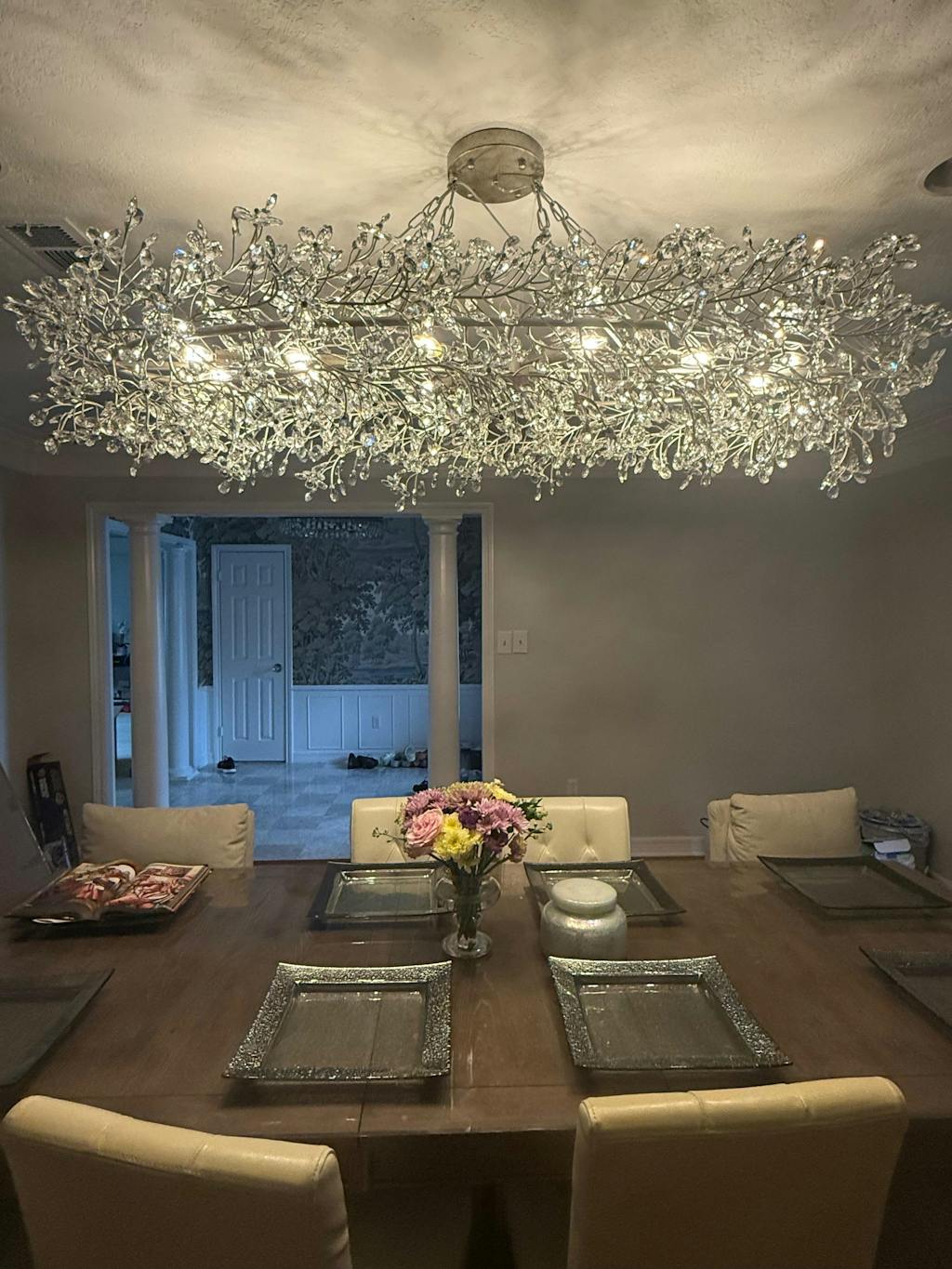 - At least 7 and half feet clearance from floor to bottom of chandelier.