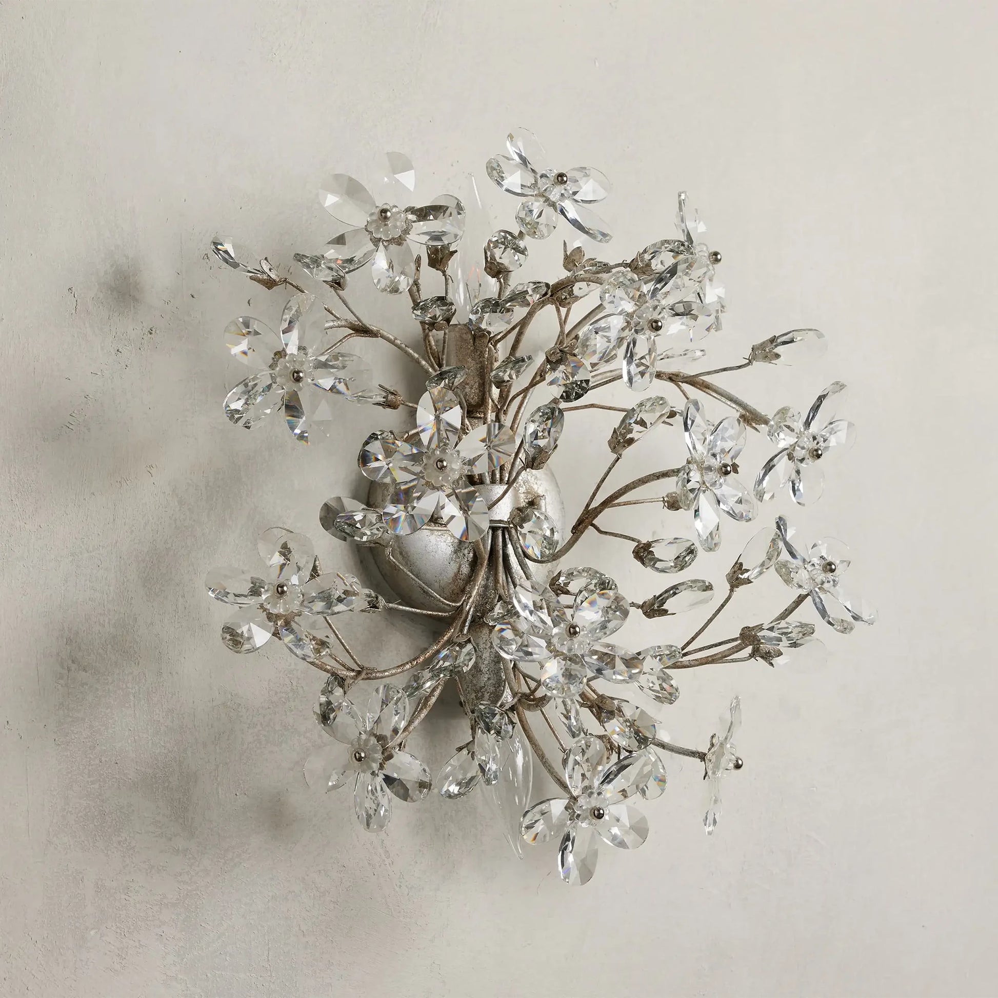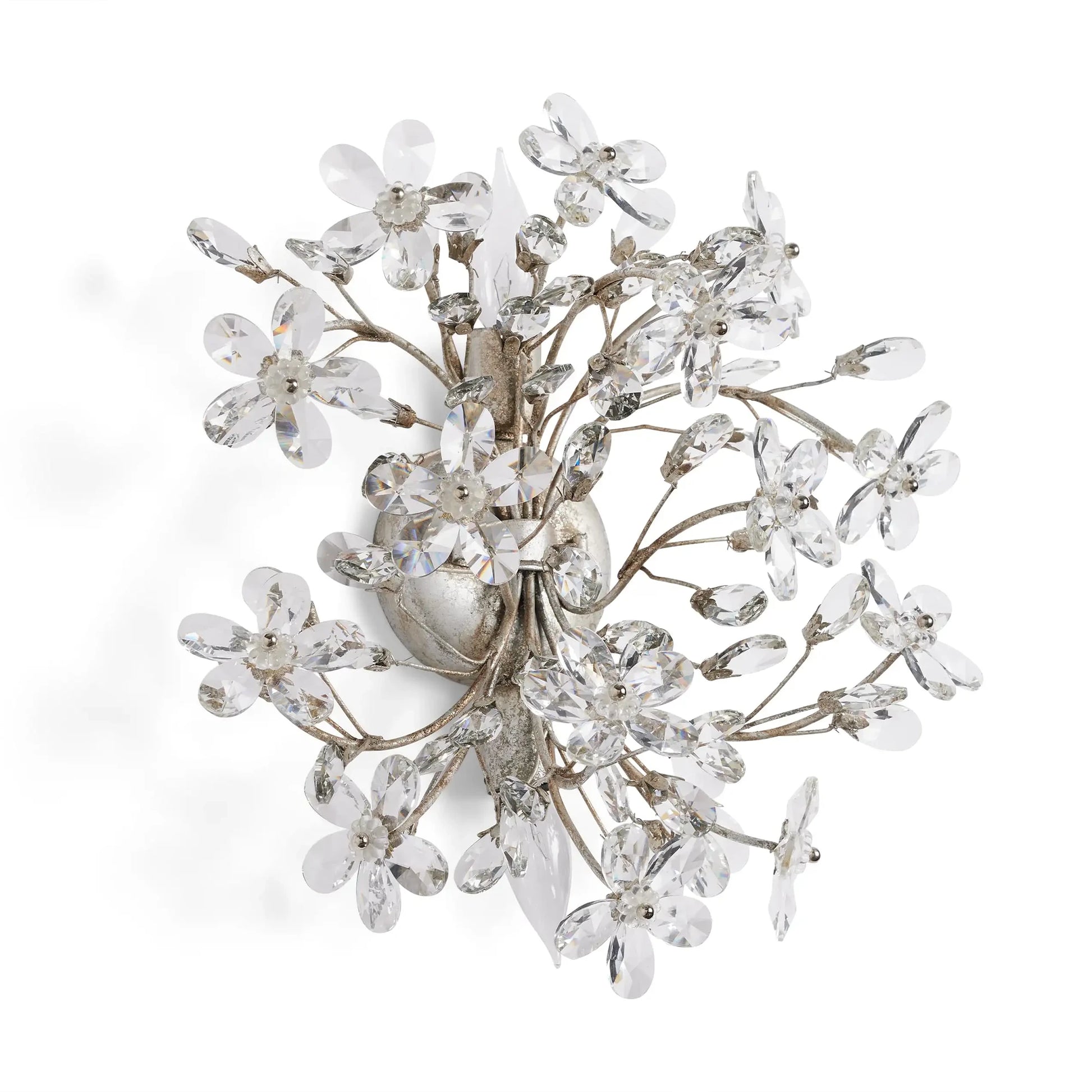 Luxurious crystal florals and drops illuminate each branch-like form of our elegant Fiore Lighting Collection. Crafted by our artisan partners from Italy from solid iron hand-finished in either silver, gold, or bronze, each piece is inspired by the beauty of nature and celebrates premium craftsmanship.